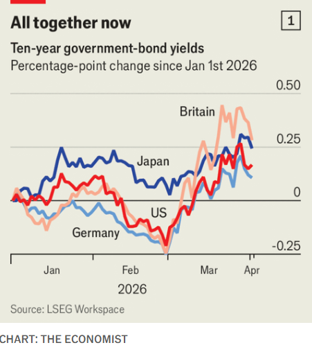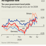 It is not just America: governments’ borrowing costs are in flux almost everywhere. At one point on March 23rd Britain’s ten-year yield topped 5.1%, its highest since 2008. Germany’s has hit 3.1%, higher than at any point since the euro zone’s sovereign-debt crisis. Japan’s has reached 2.4% for the first time since 1997. All saw bond yields soar in the wake of the Iran war, then fall back over the past few days (see chart 1).