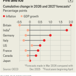 The longer the Strait of Hormuz stays shut, the worse such worries will get. The OECD’s projections were based on the assumption that energy shortages will begin easing within weeks, and that disruption in 2027 will be “limited”. It reckons a longer closure could subtract 0.5% from global GDP next year, while adding 0.9 percentage points to inflation. If that comes to pass, bond traders will be in two minds for a while yet. ■